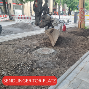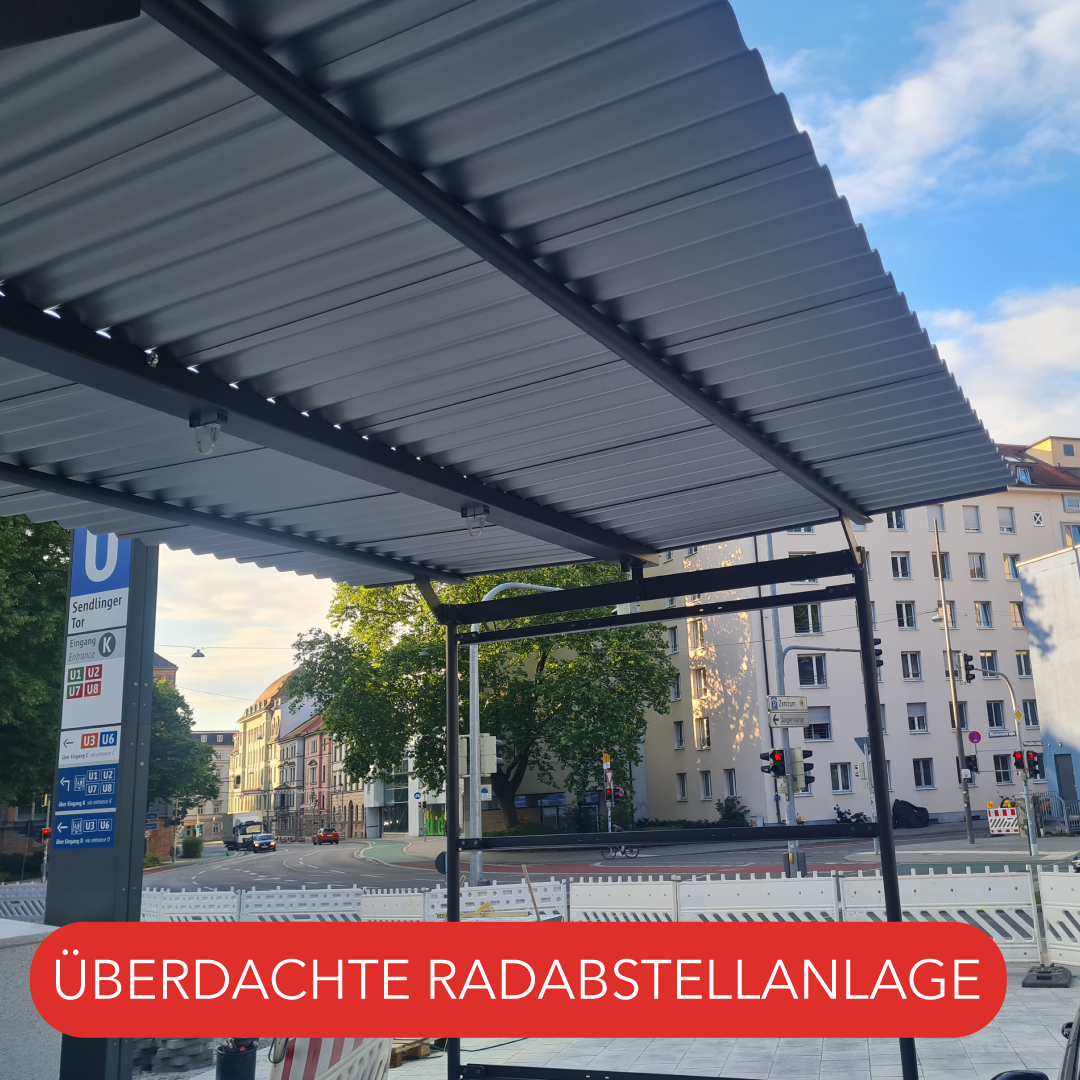 Finale Bauphase am Sendlinger-Tor-Platz: Der Sendlinger-Tor-Platz ist einer der zentralen Verkehrsknotenpunkte Münchens. Das wichtige Bauprojekt um den Knotenpunkt neigt sich dem Ende zu, denn hier wird derzeit das letzte Teilstück an der Blumenstraße/Wallstraße fertiggestellt. Mit der neuen überdachten Fahrradabstellanlage, die den Radfahrer:innen künftig einen sicheren und wettergeschützten Abstellplatz bietet, ist für uns der Abschluss der Baustelle auch symbolisch unter Dach und Fach.