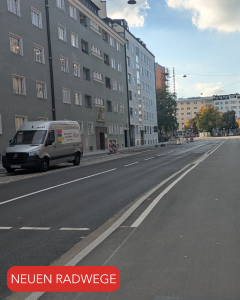 Ein weiteres abgeschlossenes Projekt und damit auch ein weiterer Grund zur Freude: Die neuen Radwege in der Rheinstraße sind nun fertig. Denn hier im Herzen Schwabings haben wir die Verkehrsplanung für eine wichtige Radentscheid-Maßnahme übernommen – und die Bauarbeiten sind nun abgeschlossen.